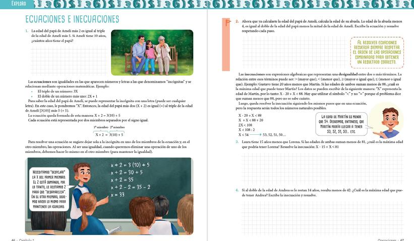 En este capítulo se incorporan conceptos claves de la geometría, tales como los cuadriláteros, las áreas y perímetros, y las figuras compuestas. Se abordan también los cuerpos geométricos, incluyendo poliedros y sólidos de revolución, y se exploran las propiedades del círculo, la circunferencia, y los polígonos inscritos y circunscritos en una circunferencia. Además, se introduce el tema de las transformaciones isométricas, que permitirá a los estudiantes experimentar con las figuras a través de simetrías, traslaciones y otras transformaciones.