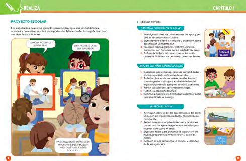 Realiza. En esta sección se presentan las propuestas de proyectos. Cada propuesta se presenta con un soporte gráfico para facilitar la lectura por parte de los alumnos. Los proyectos están propuestos como una respuesta activa a la satisfacción de las curiosidades planteadas al inicio del capítulo. Son estos proyectos los que motivarán y encauzarán los diferentes aprendizajes. Cada docente tendrá la posibilidad de adaptar cada proyecto a su realidad, llevándolo a cabo lo más significativamente posible para sus alumnos.