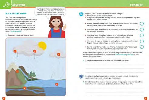 Investiga. Presenta inquietudes de investigación o análisis. Disparadas por las curiosidades que originaron las preguntas iniciales del capítulo y relacionadas con las propuestas de los diferentes proyectos. En esta sección se introducen los contenidos de Ciencias Sociales y Ciencias Naturales.