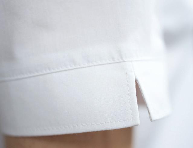 Wrinkle Resistant fabric is treated to resist wrinkles and the garment holds its shape with multiple washes.