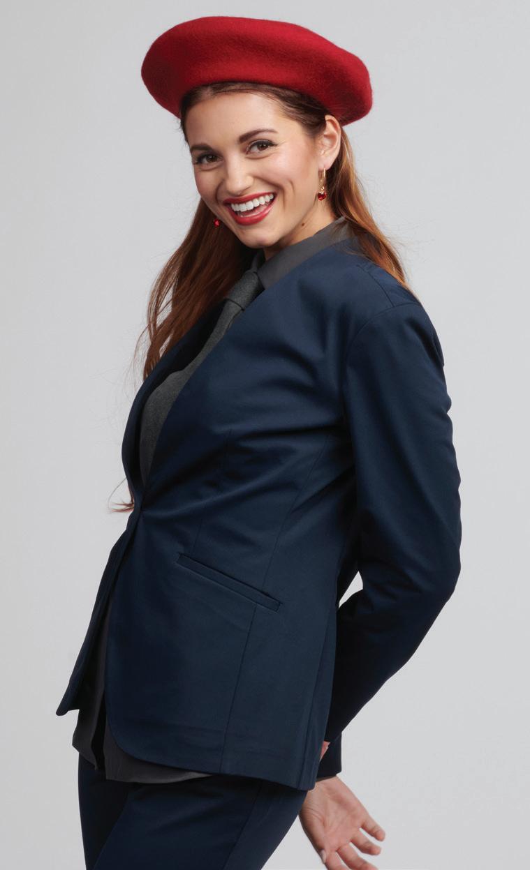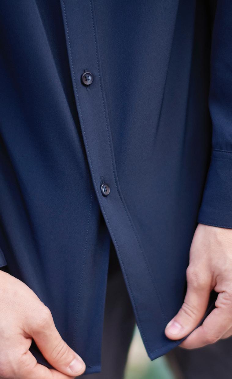 Modern silhouette with a slim cut to fit close to the body and chest, narrow sleeves, tapered through the waist