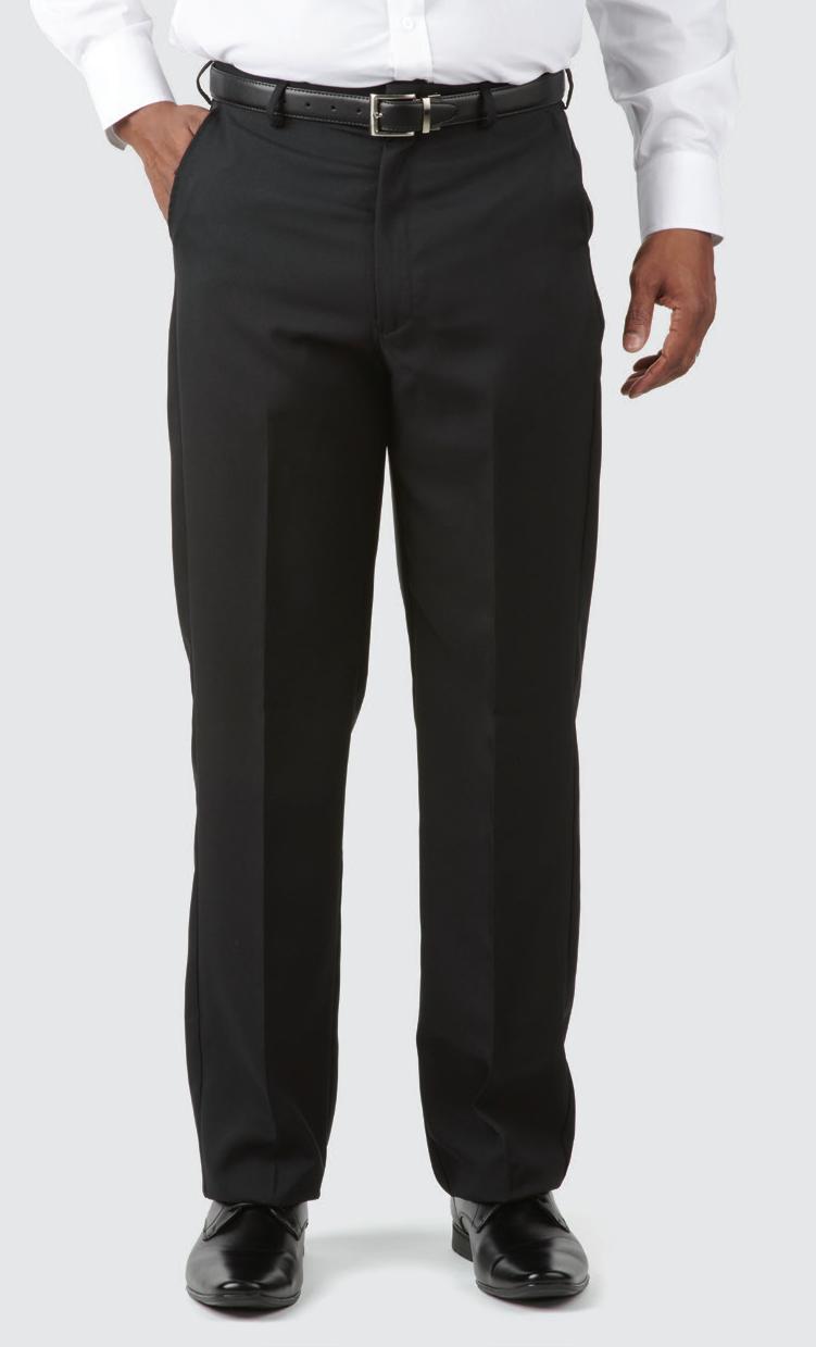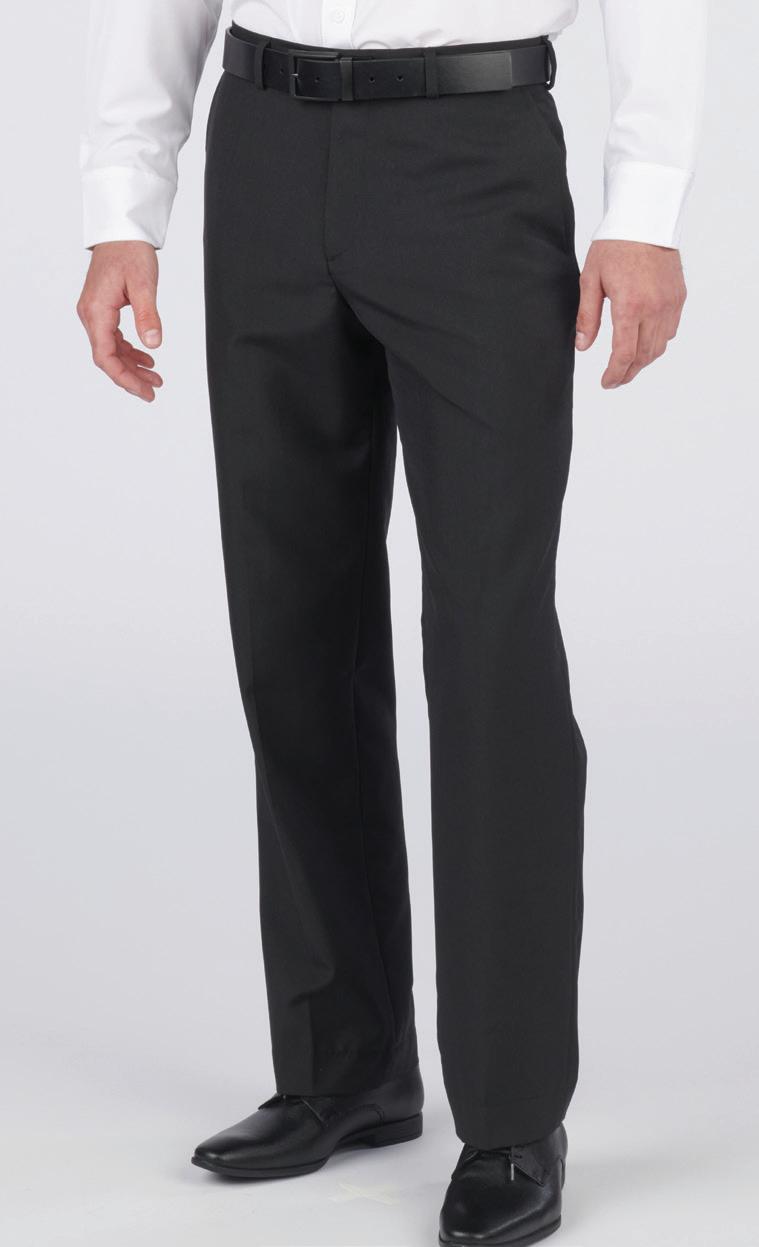 Sits at waist or slightly below the waist, relaxed through hip, seat and thigh, straight leg opening, pleated and flat front