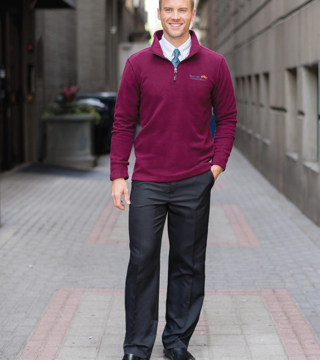 Tuff-Pil® Plus High-Tech Acrylic fibers used for uniform ready sweater apparel offer low-pil performance, colorfast and durability. The garment is designed to last 30–50 home wash cycles.