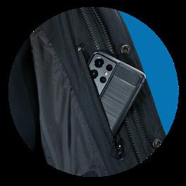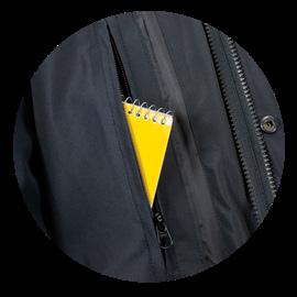 Two front chest pockets w/hidden document pockets