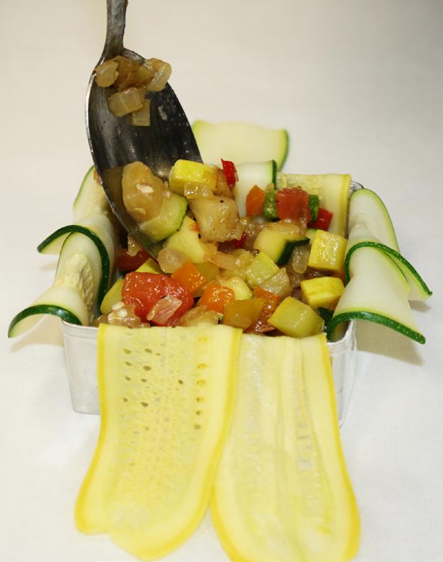 11. When cooking the modern ratatouille “gift box” recipe, which ingredient do you lightly salt and macerate for 30 minutes before it gets sautéed?