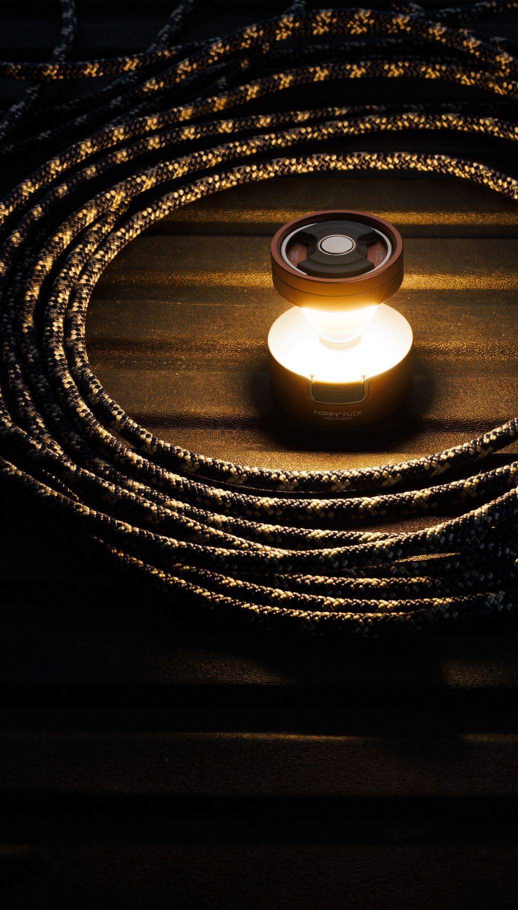 The POPPY PUCK is the pocket-sized version of our classic POPPY lantern with an enhanced pop-up design that allows the light to be angled in any direction. Equipped with 2 light sources and 5 light modes, the POPPY PUCK provides convenient hands-free lighting with its folding hanging hooks and powerful magnetic base.