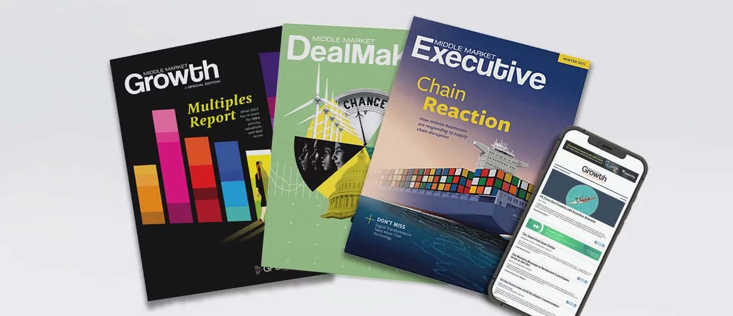 The Middle Market Growth editorial team produces a weekly email that features thought leadership and news from around the middle market, including our PE Weekly deal roundup. Learn more and sign up to receive the newsletters at middlemarketgrowth.org/subscribe.