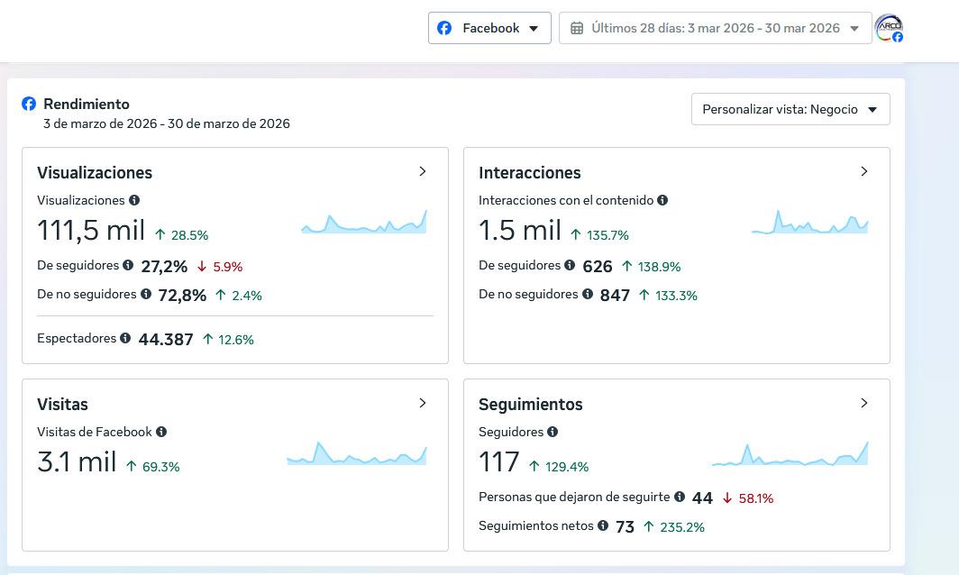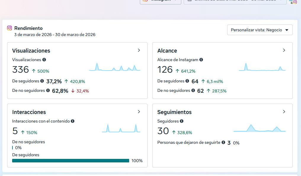 Con relación a una segunda red social como elemento paralelo de interacción, se presenta el rendimiento dentro de un periodo de 28 días evaluados y 1,396 seguidores:
