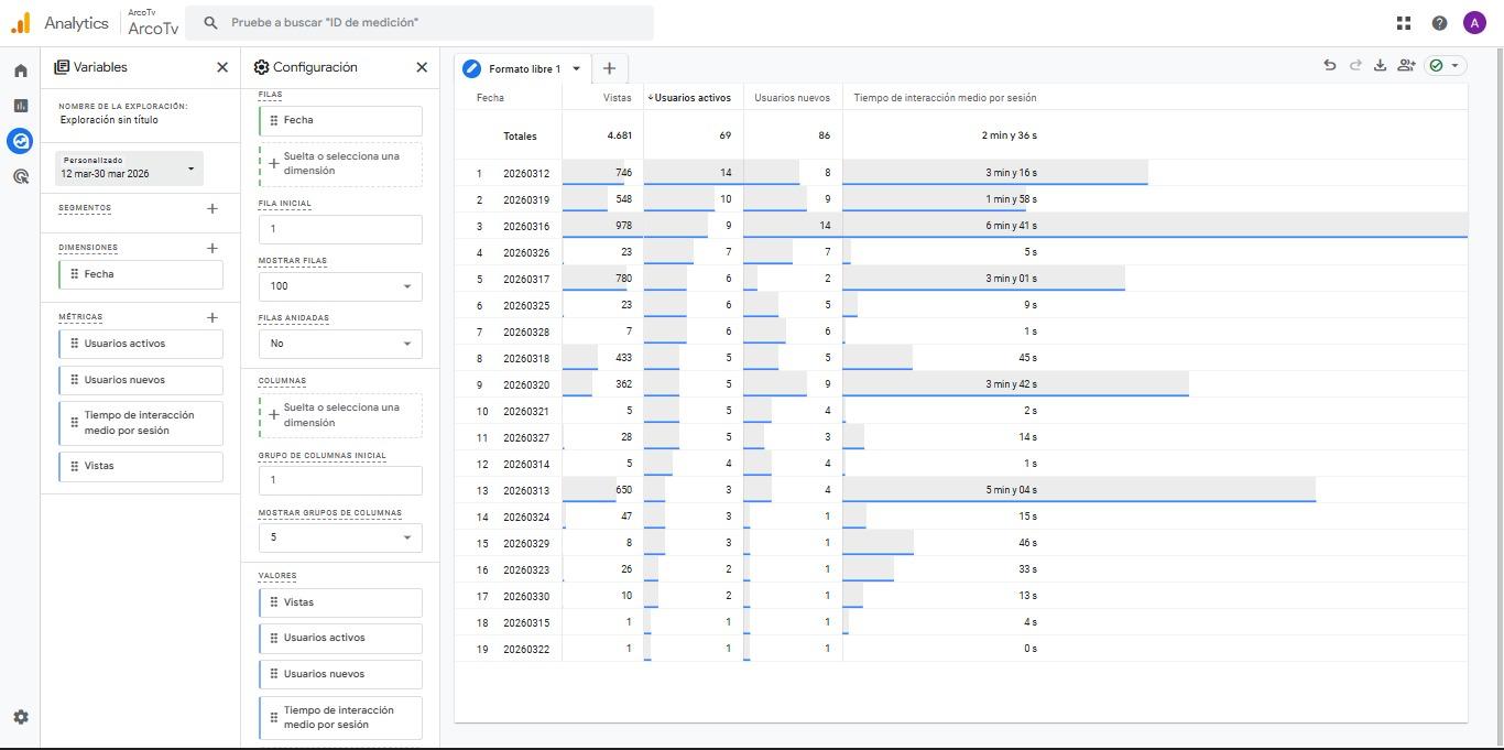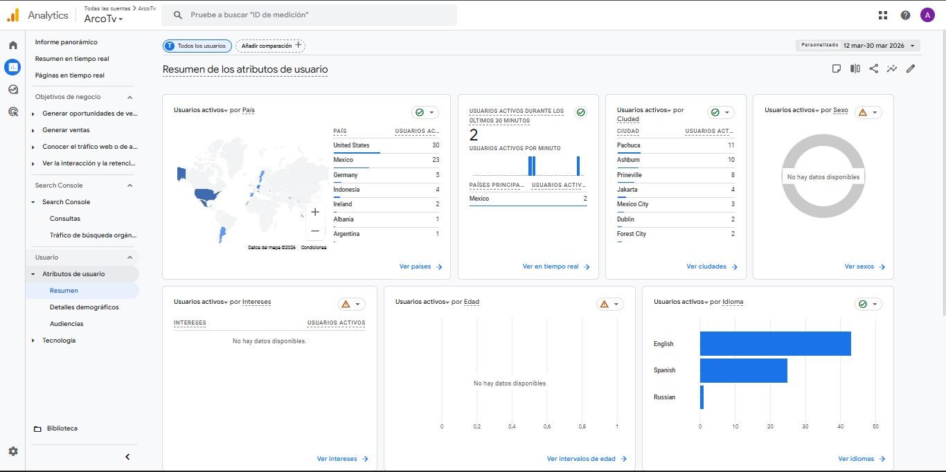 Derivado de la revisión de los analíticos medidos a través del tracking code que procesa los indicadores desde el hosting, a continuación se muestra el resultado de los promedios de medición en el periodo de investigación del: 12 – 30 MAR 2026.