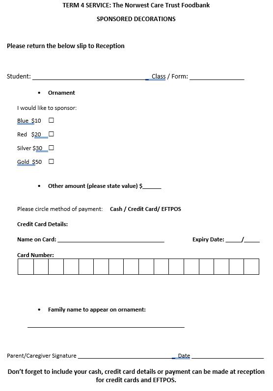 There is also an opportunity to give a financial donation (earn a Christmas decoration) and give the students even more opportunity to purchase more goods for the overall donation.