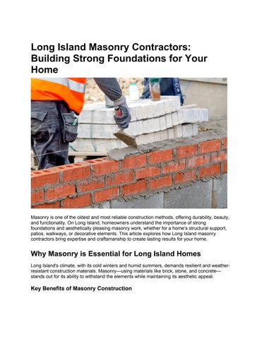 Long Island Masonry Contractors_ Building Strong Foundations for Your Home