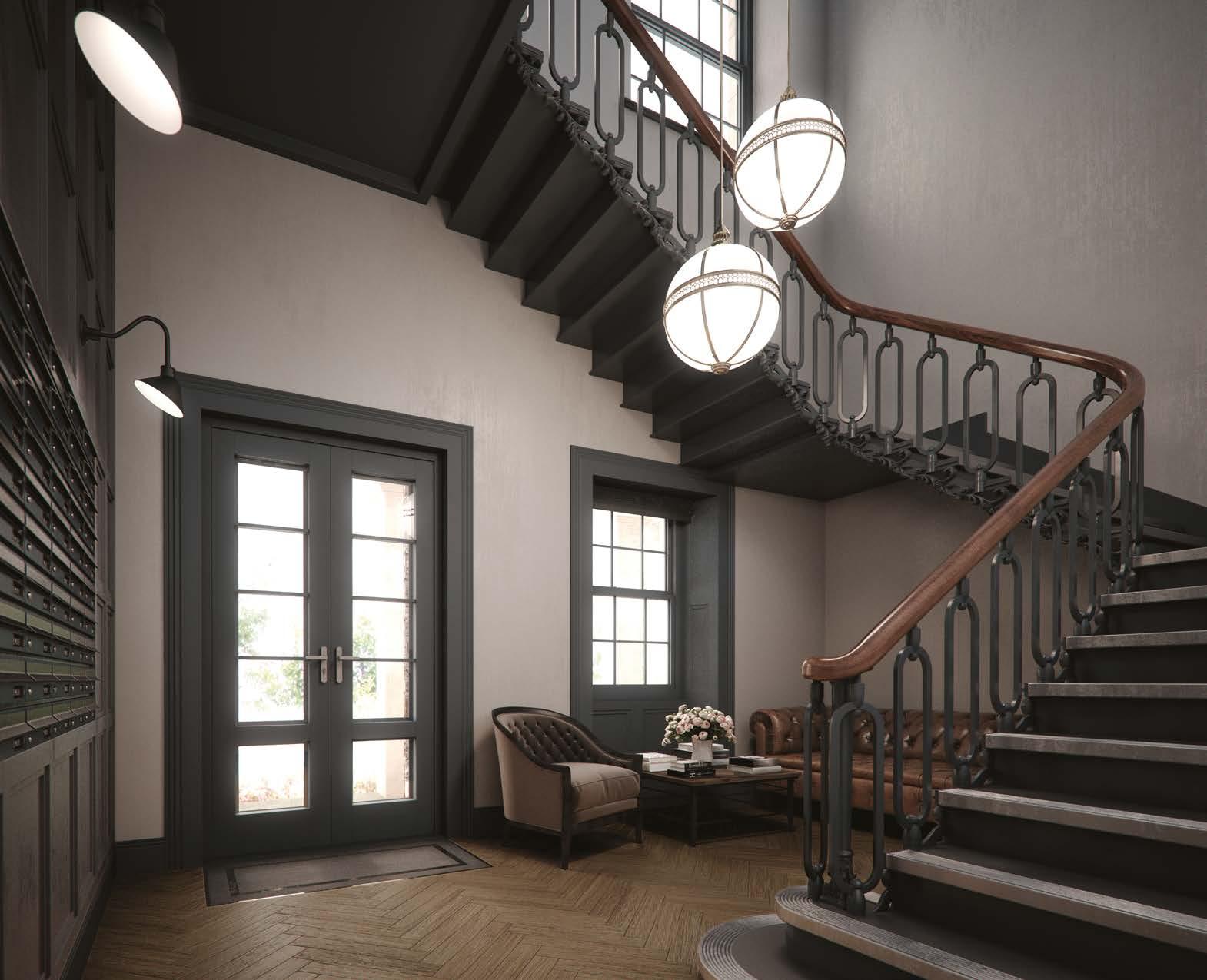 The walls will be insulated and the properties will be heated by a modern, efficient centralised system, to provide a comfortable living environment. The historic stone walls, lintels and cills will be repaired and replaced. Original features such as roof trusses, ornate ironwork grilles, window panelling and built-in cupboards are being retained. The extraordinary cantilevered stone staircases in the communal areas are being extensively restored.