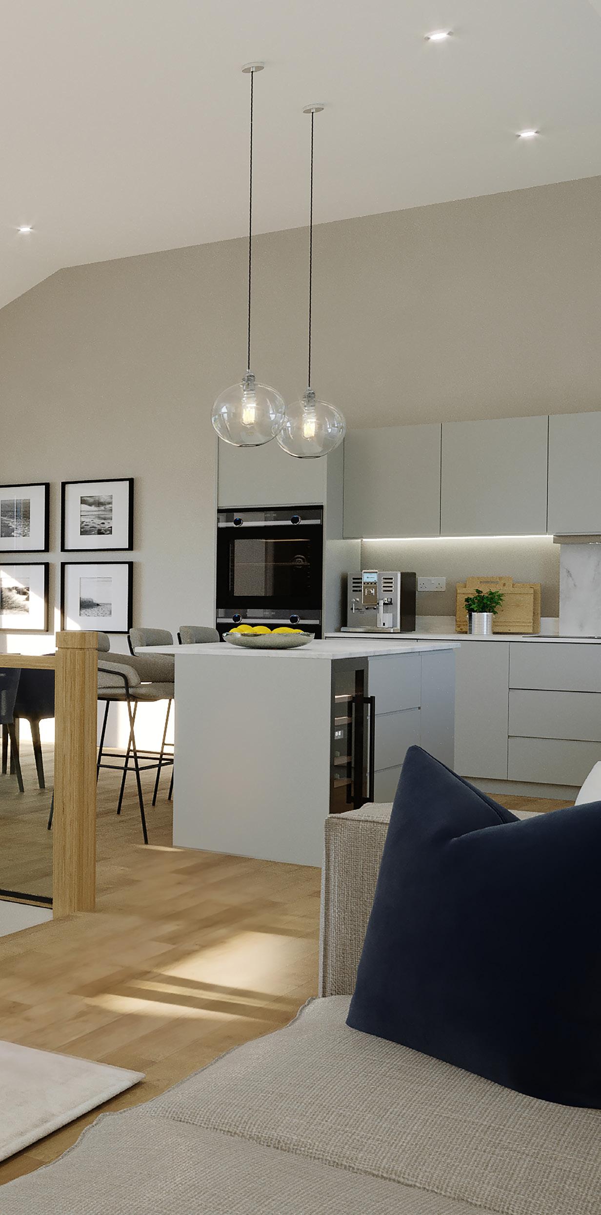 Heating and hot water are provided by a highlyefficient air source heat pump, delivering lower running costs and reduced carbon emissions.