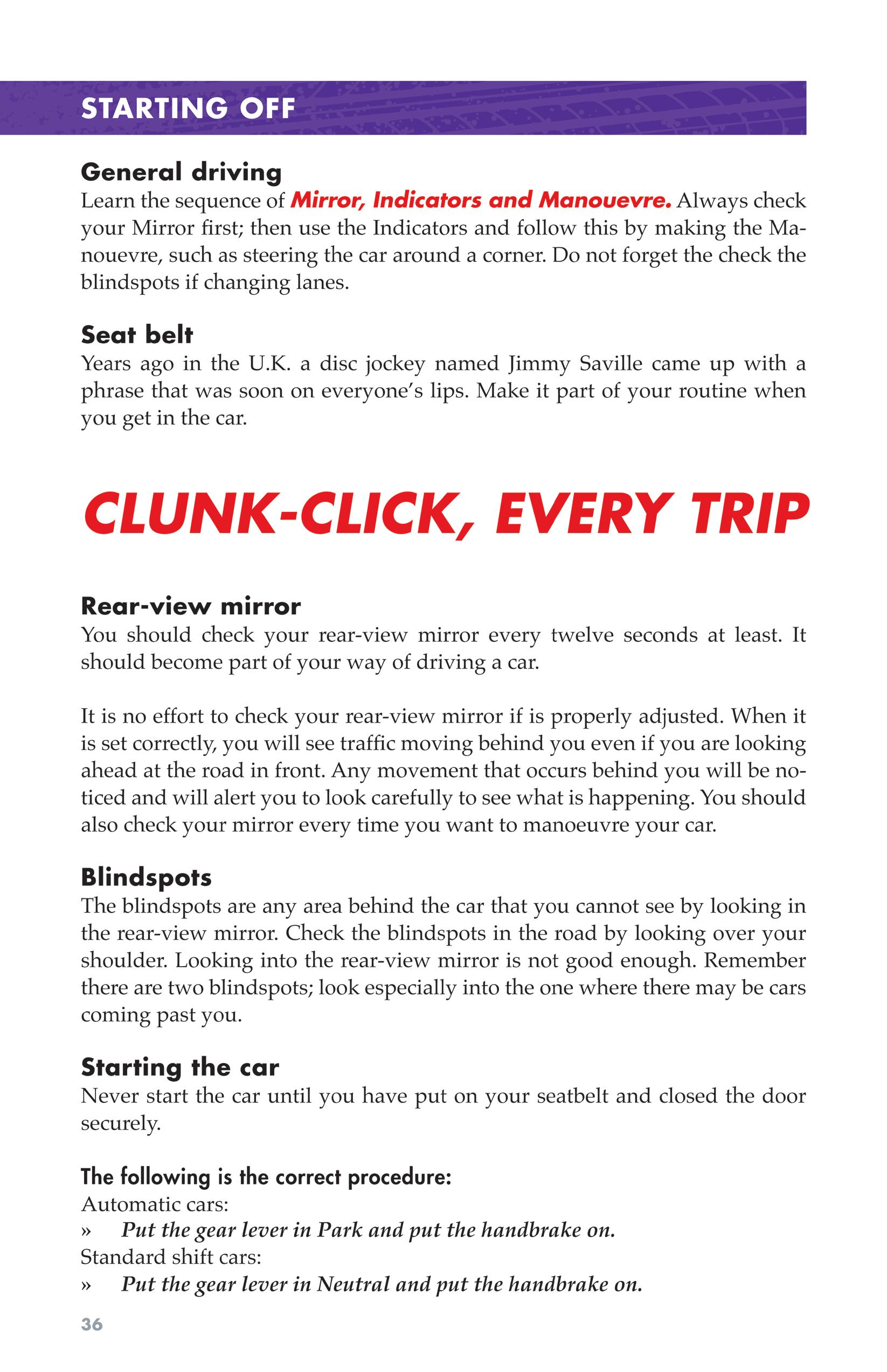 It could be pointed out that this book has been written by someone with many years of driving experience. How has the author achieved this? Simply by obeying the rules and taking the advice of other more experienced drivers.