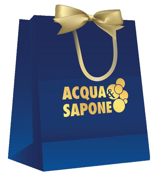 Da Acqua&Sapone il Regalo Perfetto lo componi tu Scatola automontante in cartoncino dimensioni: 22x15x12 cm Shopper in carta, con cordoncino in tessuto e nastri centrali a doppio raso color oro dimensioni: 20x12x22,5 cm