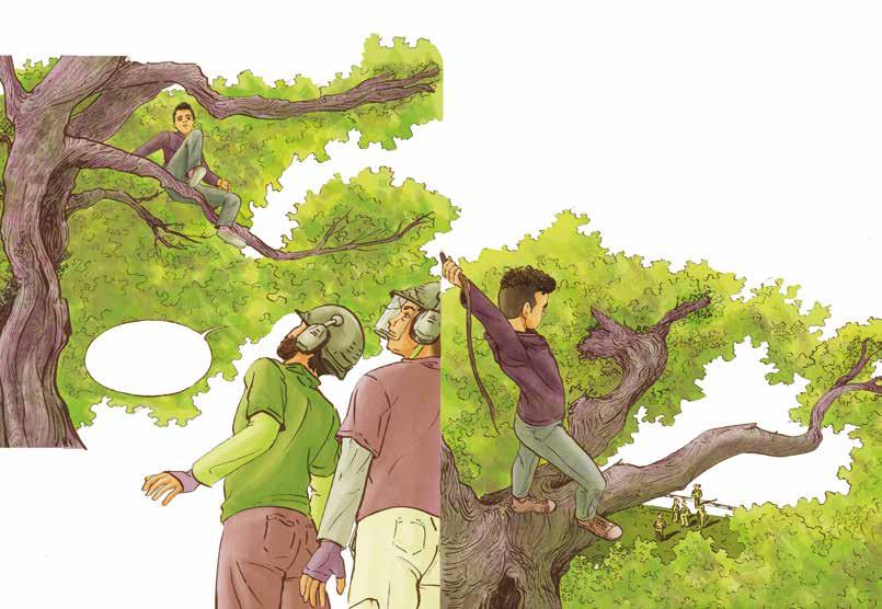 Monter dans un grand arbre, c'est tout un art ! Si tu veux essayer, ne te lance surtout pas tout·e seul·e : fais un stage avec un éducateur ou une éducatrice à la grimpe d’arbre, qui t’encadrera en toute sécurité.