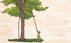 Pas question de laisser la corde frotter contre la branche : on utilise une fausse fourche, une sangle munie d’anneaux, pour qu’elle puisse bien coulisser. Et si on veut éviter que quelqu’un d’autre grimpe, il suffit de lover la corde (de l’enrouler). Panne d’ascenseur !