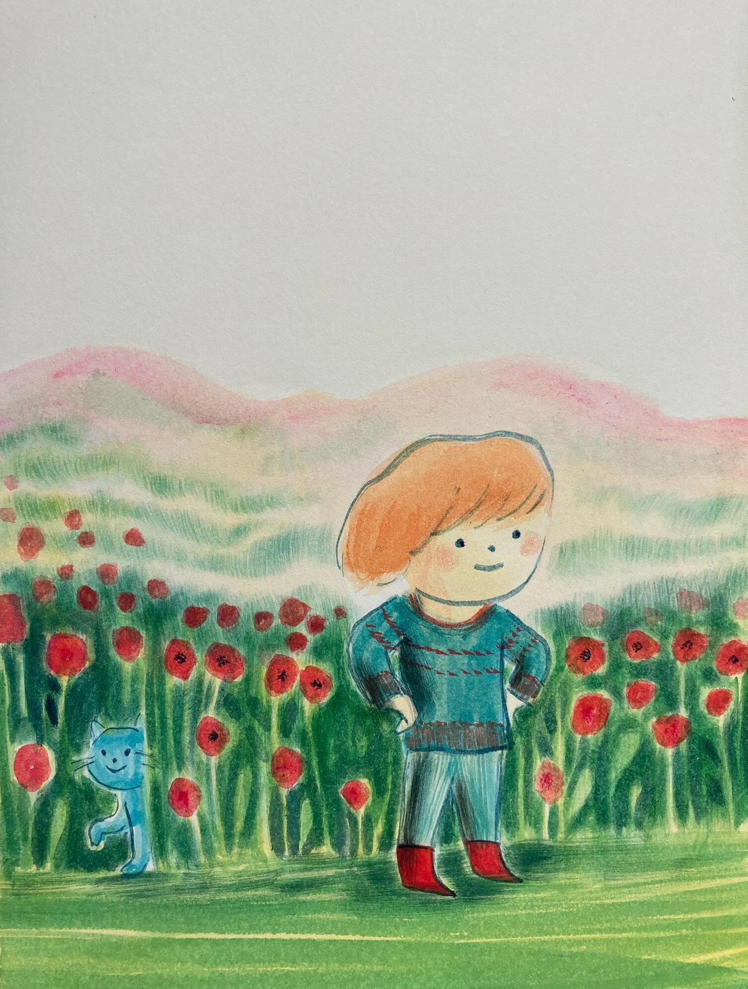 Lamais on n’avait vu un arbre aussi mal planté le jardinier ne devait vraiment pas avoir la main verte ! Au lieu de s’élancer vers le ciel, son tronc traîne par terre. Mais au village, allez savoir pourquoi, personne ne faisait attention à cet érable chétif comme un poulet déplumé. Le jardinier maladroit et les habitants étaient sûrement persuadés que le pauvre allait finir par s’effondrer et dépérir. Or, voyez-vous ça non seulement l’érable n’a pas péri, mais il a grandi, grandi, et son tronc s’est élargi. Il s’est mis à produire de nouvelles branches. Les enfants prirent l’habitude de s’asseoir sur son tronc (logique, il était à leur hauteur !).