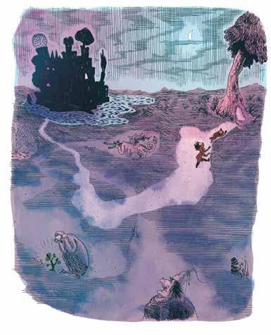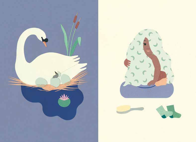 L’atmosphère de contes et légendes et les illustrations colorées délicates mêlant peinture et collages, favorisent l’immersion.