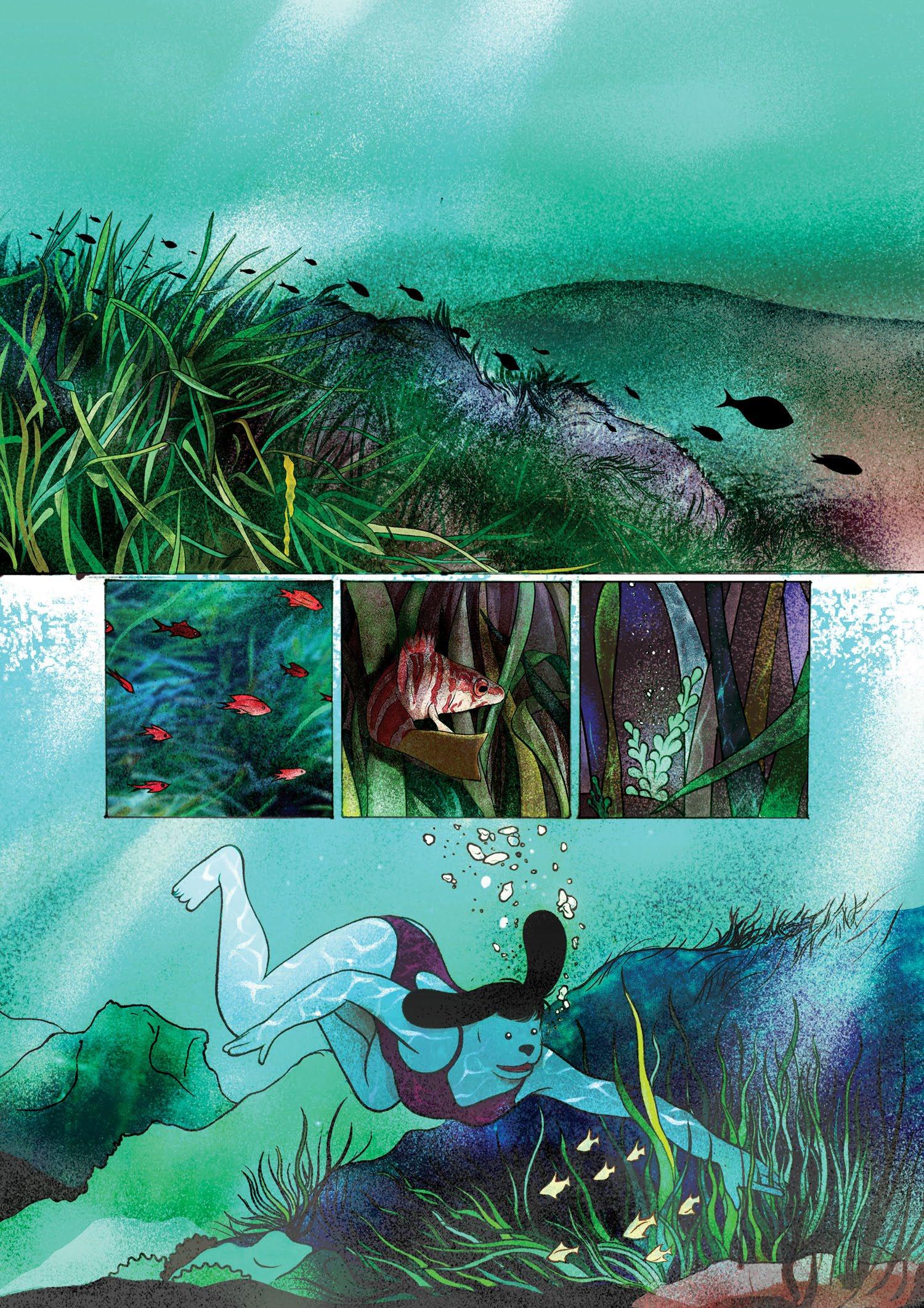 • Des dessins originaux, qui jouent à merveille entre les différentes échelles et créent un univers se déclinant souvent en deux couleurs, le rose et le bleu, pour rendre compte avec subtilité de la « double » vie de sa protagoniste.