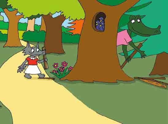 Le petit chaperon rouge partit aussitôt pour aller chez mère-grand, qui demeurait dans un autre village. En passant dans un bois, elle rencontra compère Loup, qui eut bien envie de la manger mais n’osa, cause de quelques bûcherons qui étaient dans la forêt. lui demanda où elle allait la pauvre enfant, qui ne savait pas qu’il est dangereux de s’arrêter écouter un loup, lui dit