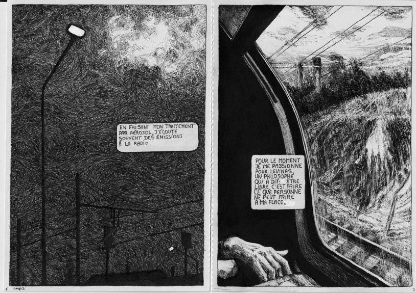 Son trait net, dans le sillage de la ligne claire, illumine les zones d’ombre d’une tragédie intime qui touche à l’universel. Myriam Perfetti, Marianne