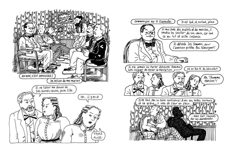 rend chaque année au festival d’Angoulême, où elle est confrontée à la diversité de la création mondiale. Ils ramènent à chacun de leur voyage de nombreux ouvrages. Et peu à peu, ils fondent une bibliothèque, source d’inspiration dans laquelle puiser les modèles et les esthétiques à même de les aider à se construire leur propre approche du medium. Son approche de la bande dessinée restera ainsi toujours très théâtrale et peut être décrite comme la rencontre improbable de Tchekov, Spiegelman, et Hitchcock, trois références qu’elles convoquent souvent pour expliquer son écriture.