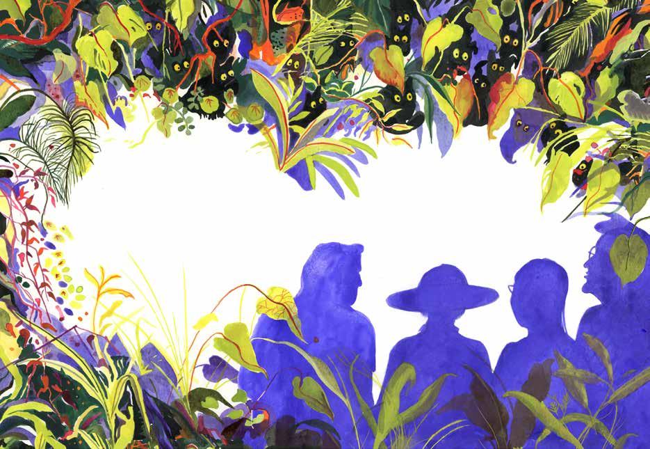 • Des illustrations majestueuses de la nature et de ses forêts, mises en valeur par le contraste entre le noir et le blanc, et qui témoignent avec force de la dimension écologique du livre.