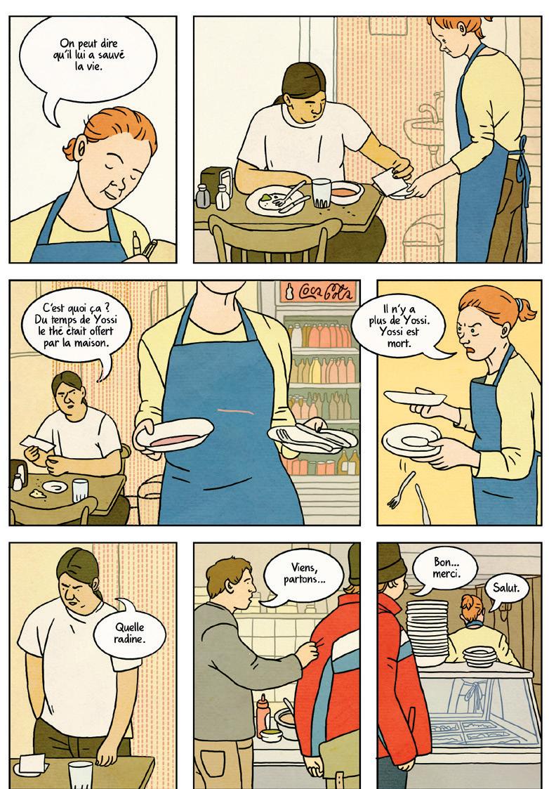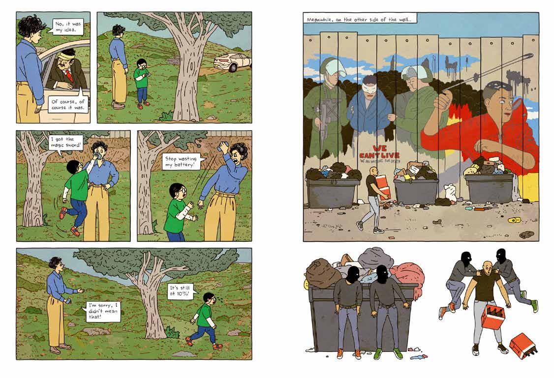 Dans le même temps, à proximité, un groupe palestinien creuse un tunnel sous le béton frontière pour organiser un trafic indispensable à leur survie économique. La ligne claire, légèrement déformante comme dans un miroir de fête foraine, de Rutu Modan a absorbé un siècle de bande dessinée pour donner vie à une foultitude de personnages, de tout âge de tous horizons, et leur offrir un rôle dans un récit puissant et loufoque.