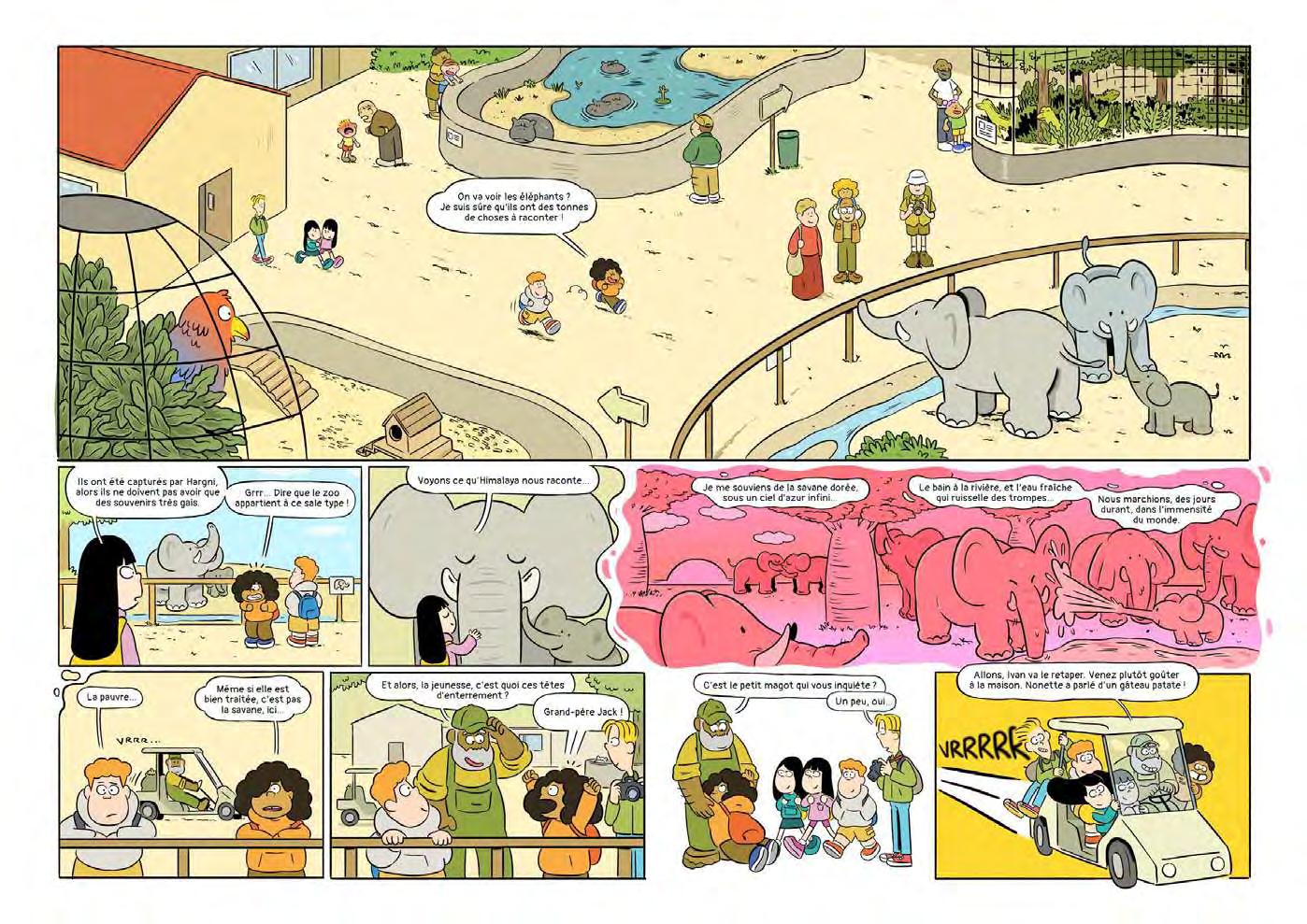 • Des dessins originaux, qui jouent à merveille entre les différentes échelles et créent un univers se déclinant souvent en deux couleurs, le rose et le bleu, pour rendre compte avec subtilité de la « double » vie de sa protagoniste.