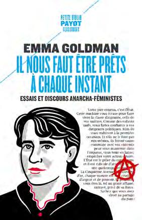 trouvera son discours au début de ce recueil, qui se clôt par la conférence que Voltairine de Cleyre, elle aussi tenante de l’action directe, prononcera alors pour défendre son amie. Entre les deux, quatre textes sur le thème de l’action et la violence : « An anarchist Looks at life » (1933) ; « Preparedness, the road to universal slaughter » (1915) ; « The psychology of political violence » (1917) ; « The power of an ideal » (1912).
