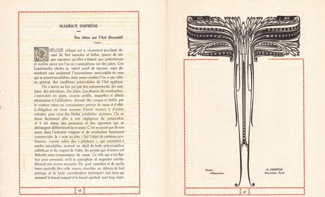 Fig. 3 Maurice Dufrène, « Maurice Dufrène. Ses idées sur l’art décoratif (suite) », Art & Technique, 1ère année, n° 3, juin 1913, pp. 45 et 47.