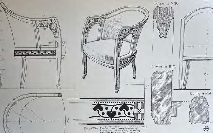 Fig. 5 Henri Rapin, fauteuil de bureau, plans et élévation, dans Maurice Dufrène, « À propos de meubles. Le siège (2e article) », Art et Décoration, XXXIV, septembre 1913, p. 85.