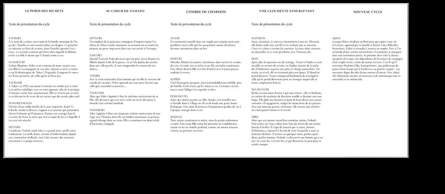 ► Le nouveau roman de Shimazaki traite d’un sujet grave, la maladie et la mort annoncée, mais aussi du choix que l’on fait face à cela : il y est question de dignité, et de liberté. Tout le texte est nimbé d’une grande douceur, un rapport à l’autre et au temps qui nous oblige, en tant que lecteur, à profiter de celui qu’il nous reste.