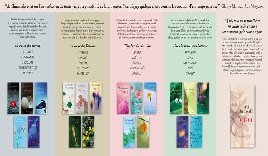 ► Devenue incontournable, avec plus de 20 romans, Aki Shimazaki est cette écrivaine d’une discrétion médiatique rare qui a pourtant su conquérir le cœur de millions de lecteurs à travers le monde.
