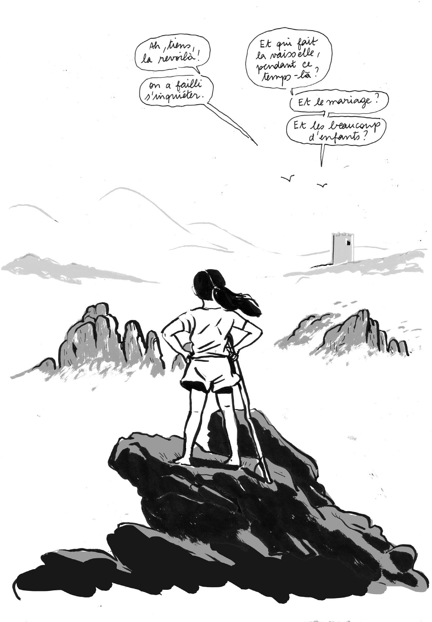 Cécile Rousset, la dessinatrice des planches qui précèdent le texte, est une artiste intrépide, qui passe avec aisance de l’enseignement à la réalisation de films d’animation documentaires (Les filles c’est fait pour faire l’amour, Esperança, Le COD et le Coquelicot…) et d’une série (L’amour a ses réseaux, Arte). Toujours prête à explorer de nouveaux mondes, elle a aussi dessiné et coécrit avec Paola Guzzo Nous sommes la voix de celles qui n’en ont plus (Actes Sud BD, 2025).