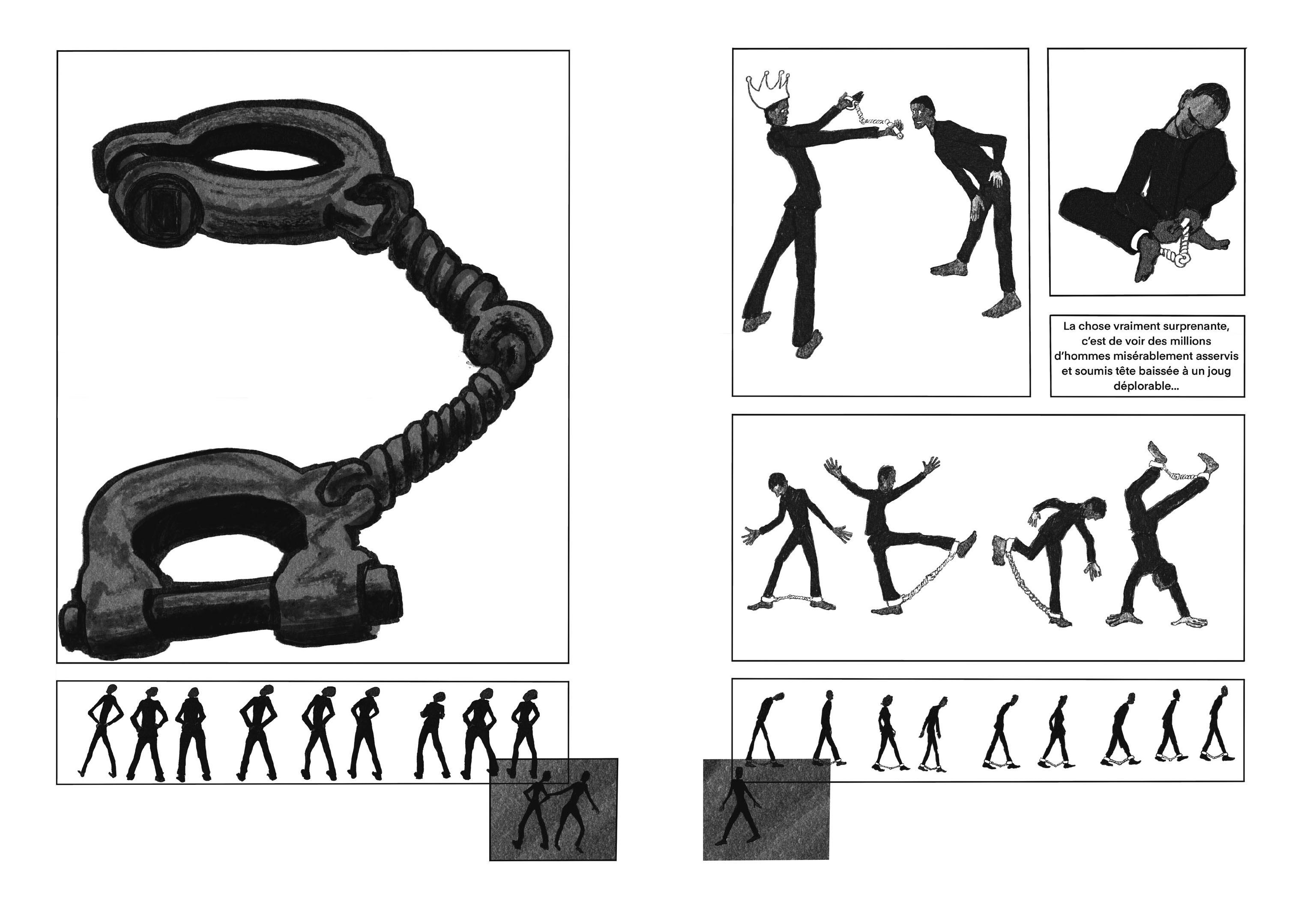 Ivan Gros, l’auteur des planches qui précèdent le Discours, est docteur et chercheur en littérature, et a enseigné à l’université nationale centrale de Taïwan. Également journaliste, dessinateur et graveur, il vit aujourd’hui à Paris. Publiée en 2024 chez Actes Sud, Kinderzimmer, sa première bande dessinée adaptée du roman éponyme de Valentine Goby, a remporté le prix du Roman graphique News Publicis Drugstore – Les Échos Week-end.