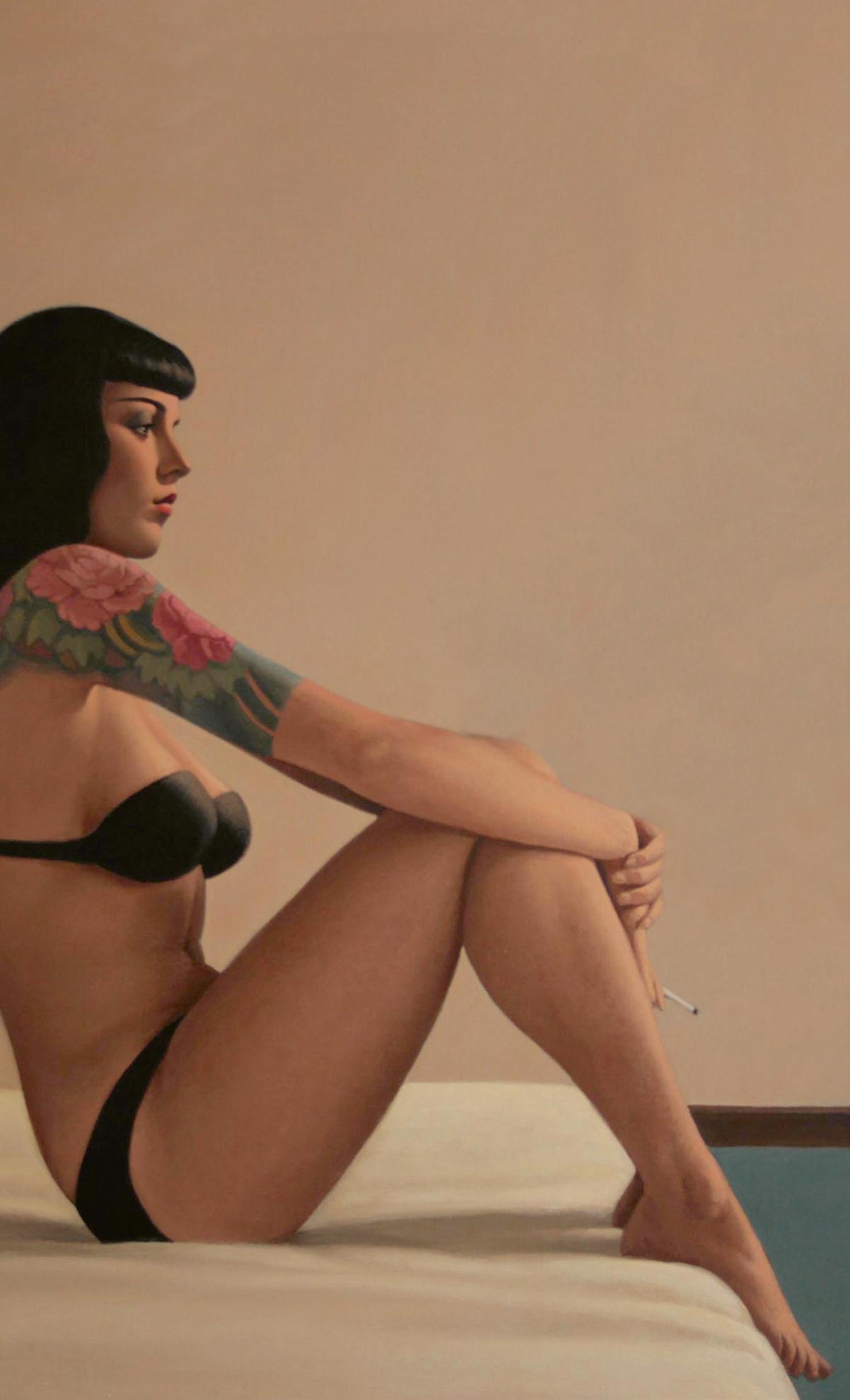 CouChée sur le flanC, parmi la mousse et les buissons.