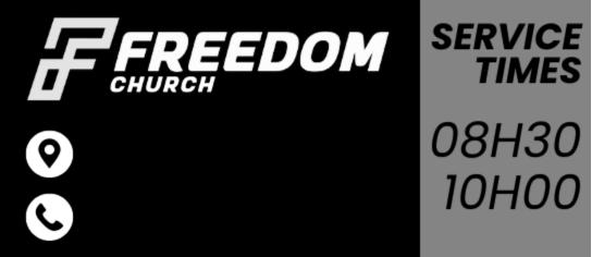CHURCH OF CHRIST MEET EVERY Sunday at 09:30-11:00 at Loerie Park, everyone is welcome. Rom 16:16. Contact Simon at 072 302 1713