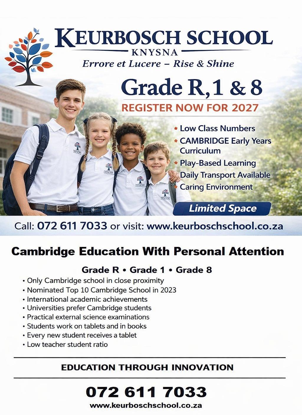 FAREWELL to our kind, caring community of beautiful Knysna, close friends, acquaintances and colleagues. After 50 years, either as part timers or permanent residents, we are moving on to the next phase of our lives and will be settling in a retirement village near Paarl to be closer to our children and grandchildren. We apologise to those that we were unable to make personal contact with before our departure.