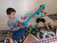 Entregamos alimentos donados a la madre y nos comprometimos a recaudar fondos para que pudiera alquilar un lugar mejor. Un cooperante de Albania estaba trabajando con nosotros. Tenía unos globos y empezó a hacer espadas de globos para los niños. En cuestión de minutos estábamos en otro mundo, batiéndonos en duelo entre nosotros y con los niños con nuestras coloridas espadas de globos. Hasta el niño mayor participó, y notamos que una leve sonrisa adornaba brevemente su rostro.