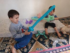 No dia seguinte, visitamos aquela família novamente, com a intenção de passar tempo de qualidade com as crianças, para as quais trouxemos alguns presentes. Voltamos a brincar com as espadas feitas de balões coloridos e cada vez que o menino mais velho nos acertava, caíamos dramaticamente, ou gritávamos como se ele nos tivesse machucado. Em poucos minutos, ele voltou a rir e menos de meia hora depois estava