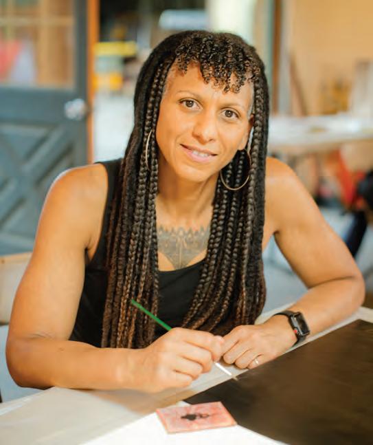 Fine Arts, she has traveled every state in the country expanding and honing her craft. She has taught multiple classes and for the past 14 years held the position of Visual Arts and Technology Program Manager at Lewis & Clark College. In 2017, she co-founded Art in Oregon (AiO), a statewide visual-arts-focused nonprofit working to build bridges between artists and communities. In 2022, she also became Director of the Bush House Museum Exhibits & Programming.