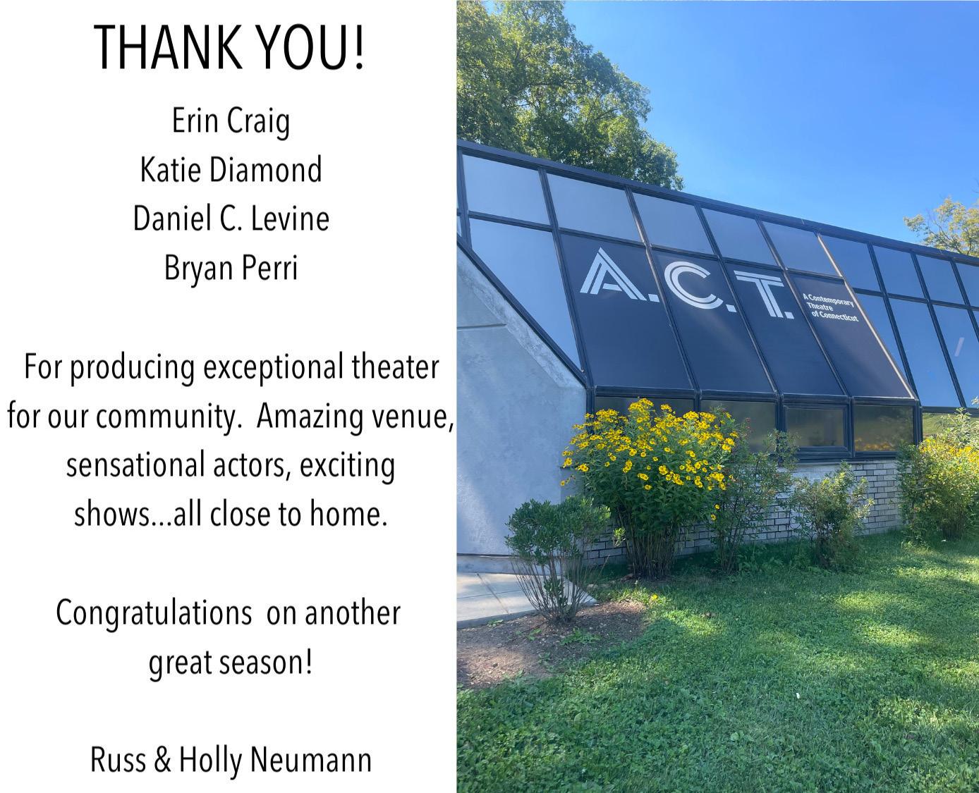 A.C.T. of CT’s mission of “Bringin g Broadway to Ridgefield” would not be possible without the support of individuals like you!