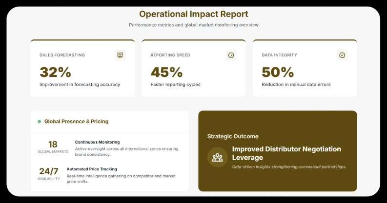 The transformation enabled leadership to shift from reactive pricing to predictive strategy. Real-time visibility into competitor pricing and promotions improved inventory planning and seasonal demand forecasting. Market expansion decisions were now supported by structured, reliable data. The automated system provided continuous competitive insights, strengthening strategic agility and positioning the brand as a data-driven market leader.