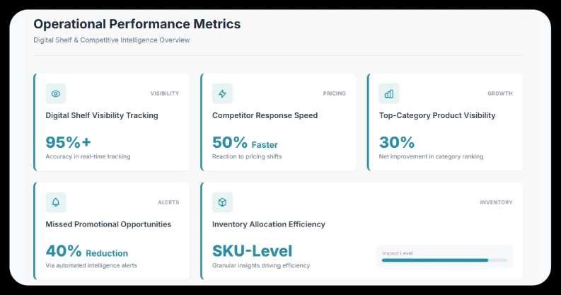 Increase digital shelf visibility tracking accuracy to 95%+ Reduce competitor response time by 50%