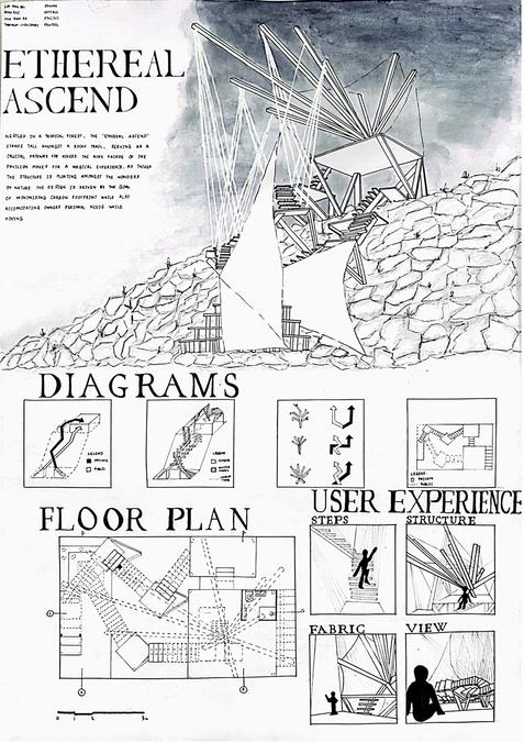 Overall,thisfinalprojecthasbeenatransformativejourney, teachingmehowtoconveymyemotionsandsensoryexperiences intophysicalspacesthatIcantrulyfeelwithin.Theprocessof playingwithlightandshadow,andunderstandingtheireffects,has revealedhowdifferentangledlightortypesofshadowradiates varyingemotionsandsensations.IgainedvaluableknowledgethatI hadneverknownbefore,whichwasbotheye-openingand enlightening.Theexperienceexpandedmyperspective,helpingme understandhowmybachcanchangeinresponsetotheunique contextofthesite.Itmademerealizehowthesurrounding environment suchasthetopography,theusefulstaircase,andthe naturalelements candeeplyinfluencethedesignandatmosphereof thespace.