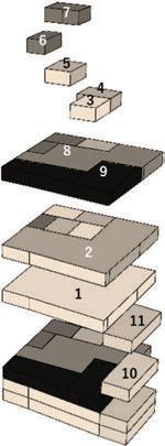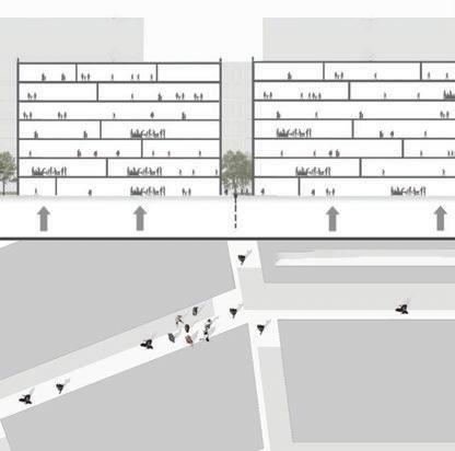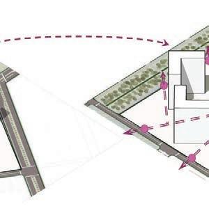 Rearragement of mass to create an over all central area according to sun orientation an wind analysis and to have the minimum distance between entries and exits