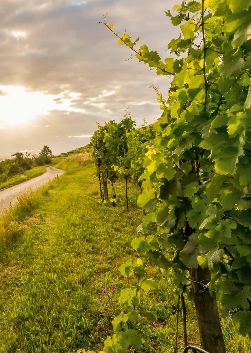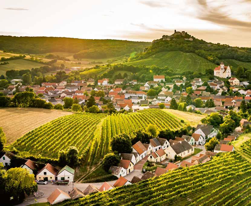 kulinarisch und vor allem in Sachen Wein so viel zu bieten hat. Besonderes Augenmerk darf der önologisch interessierte Abenteurer getrost auf das Weinviertel legen, denn nur wenige Regionen in Österreich sonst sind so groß und auch so facettenreich. Die weichen Hügel von Kamptal und Wagram, in deren Böden der Löss regiert, die steilen Terrassen, durch die sich die Donau schlängelt und wo durch die einzigartigen Formationen Kleinstklimazonen entstehen – alle mit ihrem eigenen Geschmacksprofil. Weinliebhaber kennen das besondere Gefühl, auf dem Boden zu stehen, aus dem die Geschmacksnoten stammen, die die hiesigen Weine definieren – allen voran der Grüne Veltliner und der Riesling.