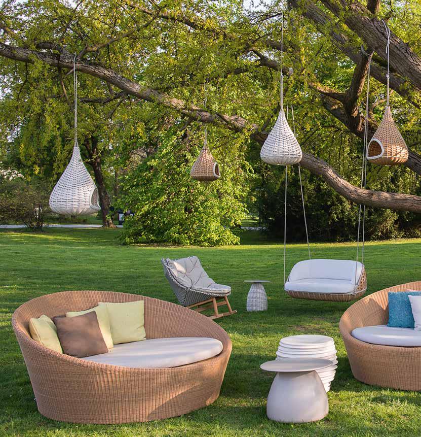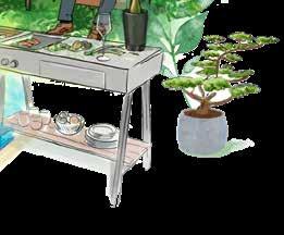 probieren.“ Aus diesem Grund gilt in Grafenegg ausdrücklich: Anfassen erwünscht. Und so sind es im Gras platzierte, farbenfrohe Outdoor-Garnituren und gepolsterte Loungemöbel, die zum gemütlichen Verweilen einladen, voll ausgestattete Küchen, die sämtliche Funktionen offenbaren oder sprudelnde Whirlpools und Home-SpaLösungen, die die Sinne auf Reisen schicken.